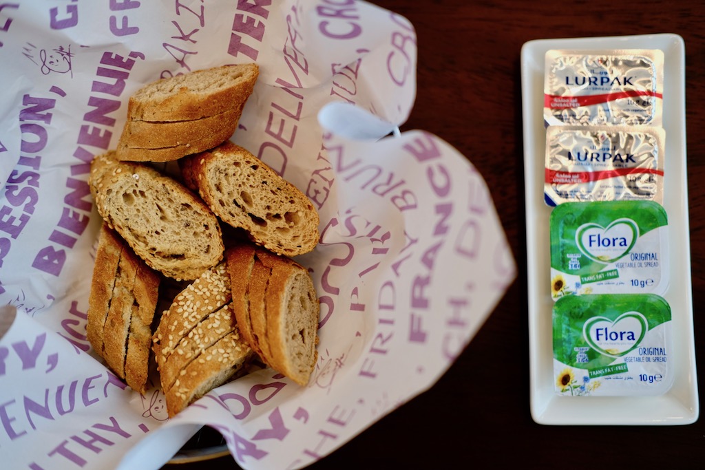 Complimentary bagel bread and butter