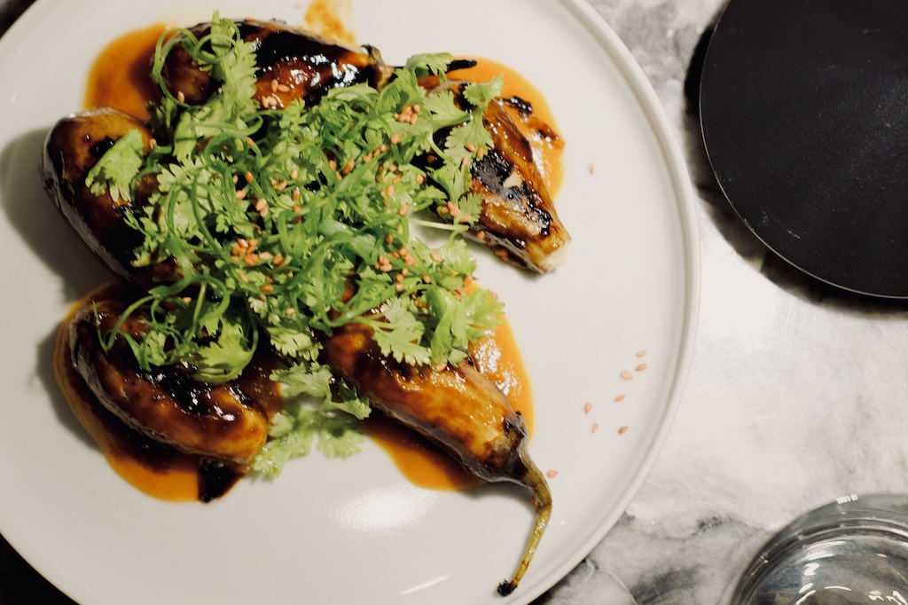 Grilled eggplants with kimchi cream – AED 55
