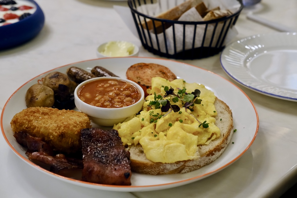 Traditional English Breakfast – AED 74 – Traditional English Breakfast ~ Two eggs any style, tomatoes, mushrooms, beef bacon, beef or chicken sausages with homemade hash browns and baked beans