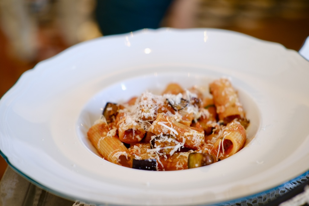 Rigatoni alla Norma – Rigatoni pasta, datterino tomato sauce, eggplant, ricotta salata