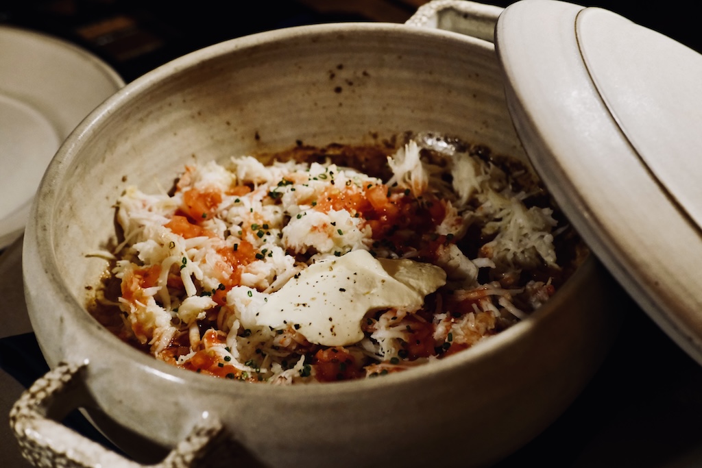Oven-baked crab rice, tomato salsa – AED 380