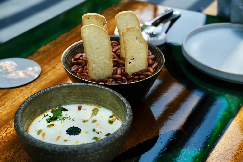 Cheese chilli toast – AED 75 – Whipped cheese, fermented chilli oil, sourdough chips