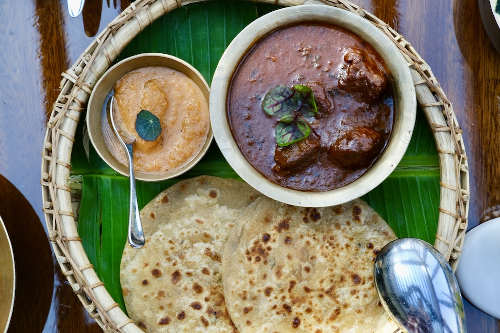 Bihari mutton, sattu paratha – AED 180 – Achaar oil, kalonji, tamatar ki chutney
