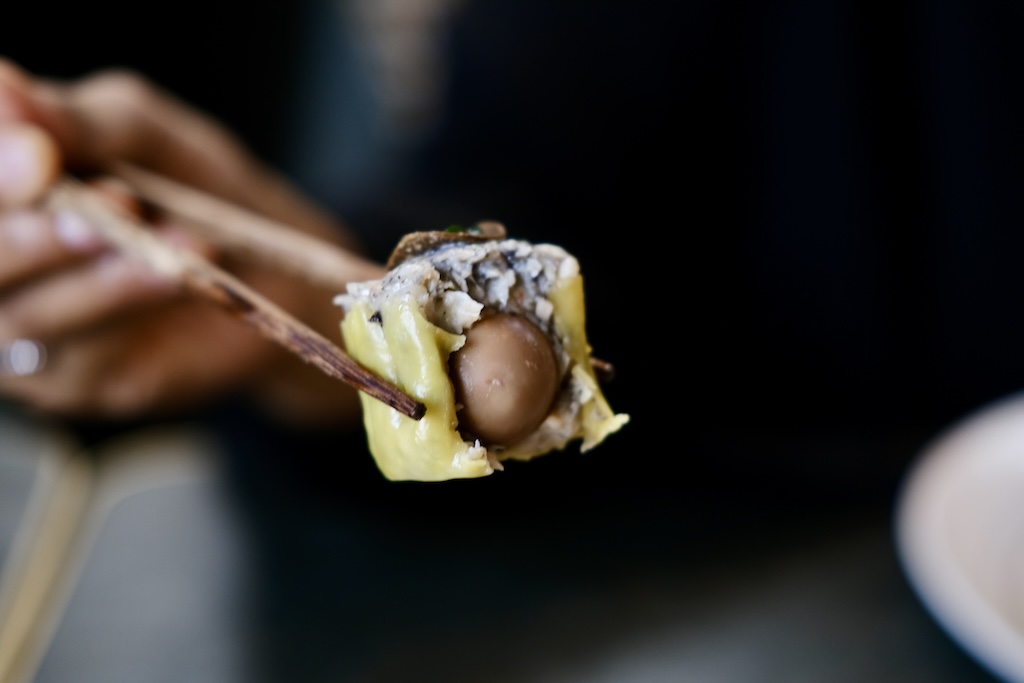 blck truffle chicken and quail egg