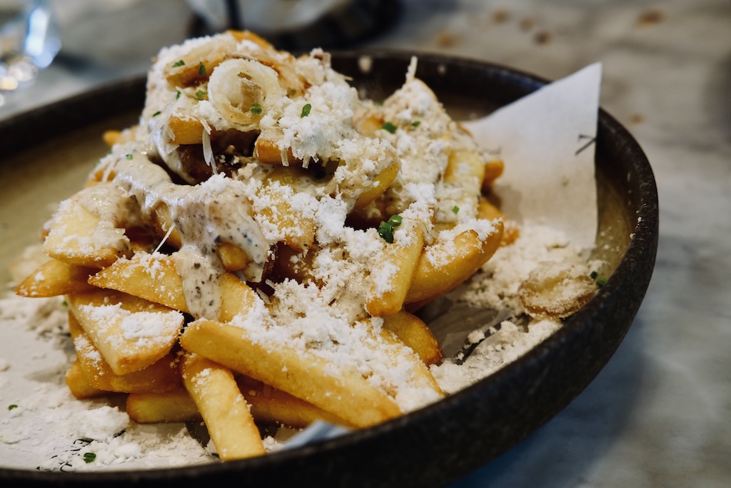 Truffle Fries – AED 55 – truffle oil topped | porcini aioli | parmigiano cheese | truffle | chives