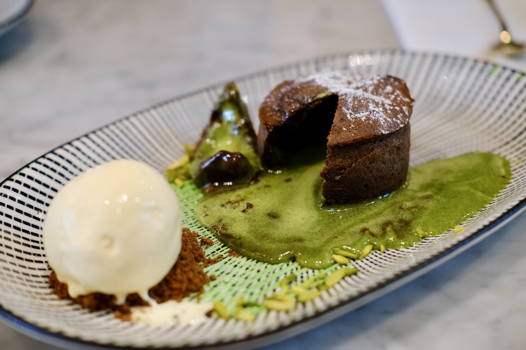 Pistachio Molten Lava Cake – AED 78 – pistachio | dark chocolate | vanilla ice cream | chocolate crumble