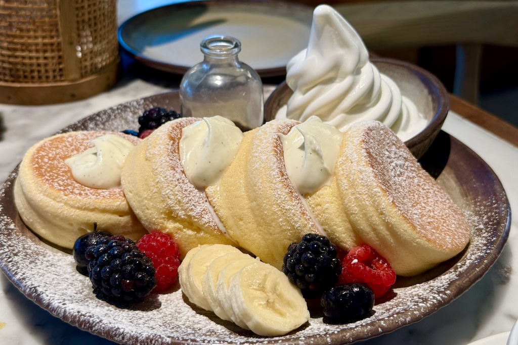 Fluffy Japanese Pancakes – AED 55 – mini japanese pancakes, fresh berries, banana, maple syrup, vanilla soft serve