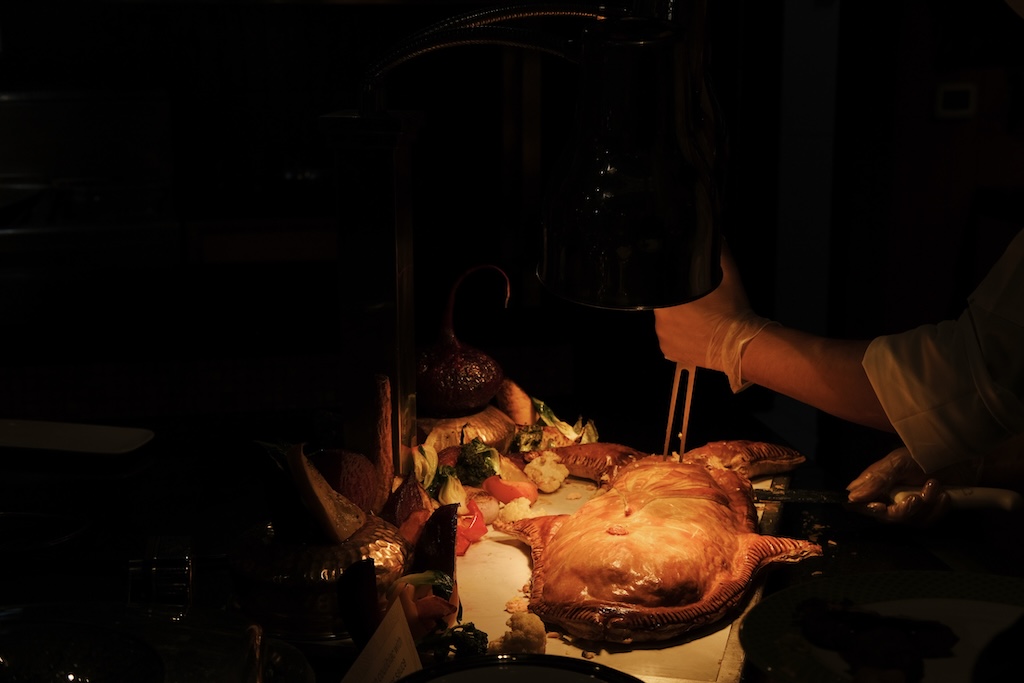 salmon Coulibiac with lemon and butter sauce